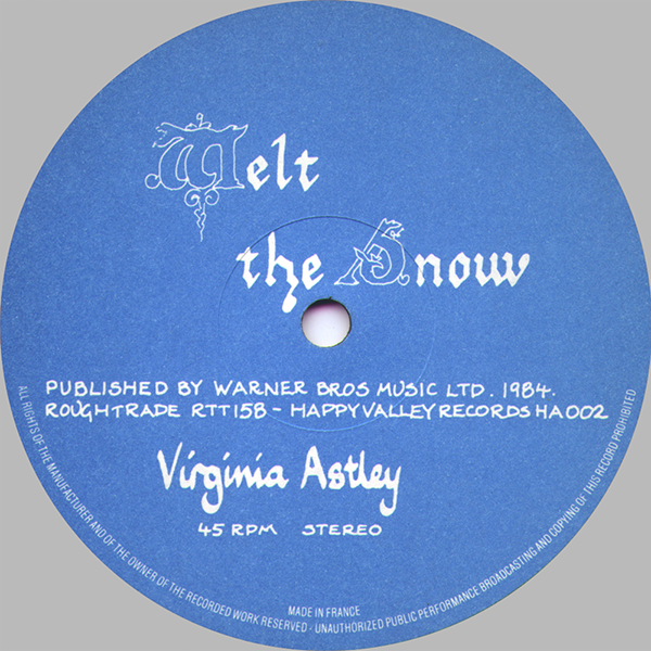 'Melt The Snow' was released on Virginia's own Happy Valley label and distributed by Rough Trade.